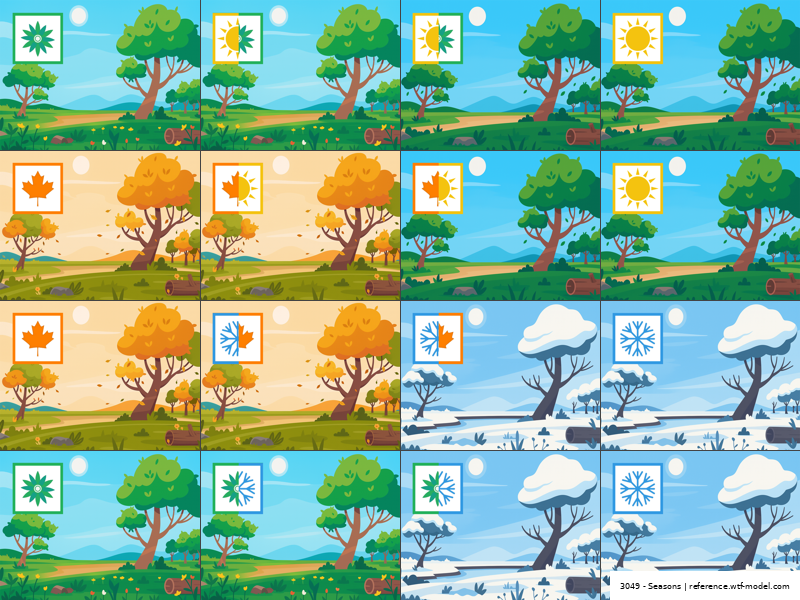 Seasons refer to the four distinct periods of the year, namely winter, spring, summer, and fall. Winter is characterized by cold temperatures and snow, while summer is known for its warmth and longer days.