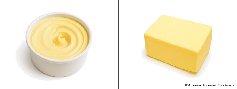 Spread refers to the act of applying butter or margarine onto bread or other food items. While butter is made from milk, margarine is made from vegetable oils.