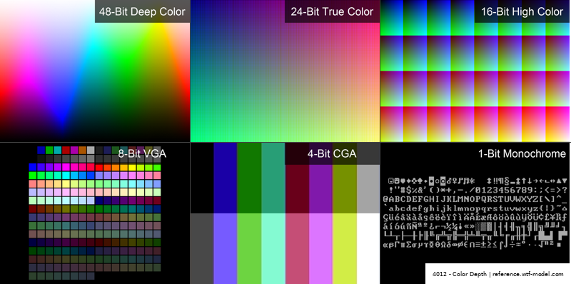 Color depth refers to the number of bits used to represent a color in an image. Monochrome uses only one bit, while deep color uses more bits to produce a wider range of colors and shades.