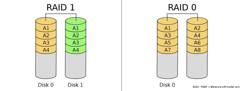 RAID 1 mirrors data for redundancy, improving fault tolerance. RAID 0 stripes data across drives, enhancing speed but no redundancy.