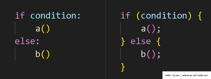 Indentation-based syntax defines structure vertically through whitespace alignment, while block-structured syntax defines it horizontally with braces marking scope.
