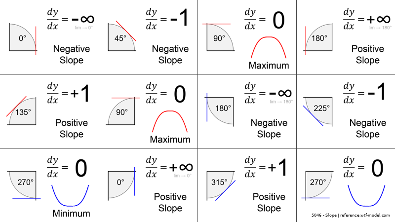 Slope is a measure of steepness in a line. When the slope is zero, the line is horizontal. When the slope is infinity, the line is vertical.