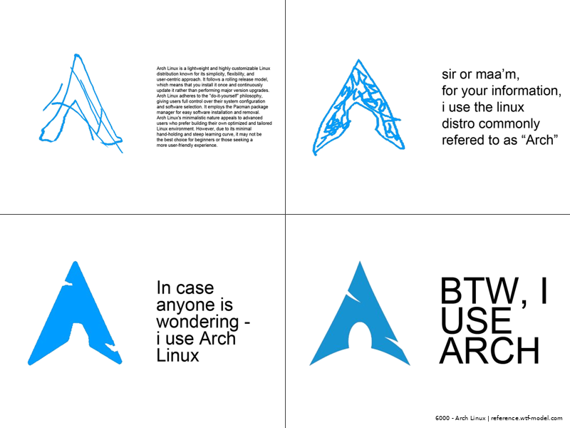 6000 - Arch LinuxLast Update: 26.06.2025ShareMaturityBasicScopeFlowCycleCenterPeripheryCC-BY-NC-ND Philipp ElhausAI GeneratedAs information increases, clarity reduces.LinksBTW I Use Arch (Know your Meme) WARNING: This entry is marked as experimental/in development.Please enable JavaScript to view the comments powered by Disqus.