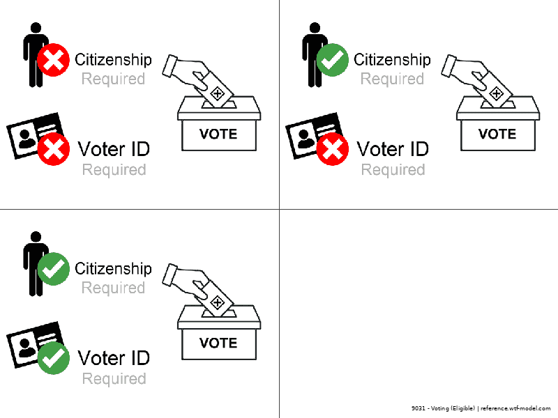 Voting (Eligible) refers to the strictness of the process e.g. if only a verified citizen is able to cast their vote or even anonymous people.